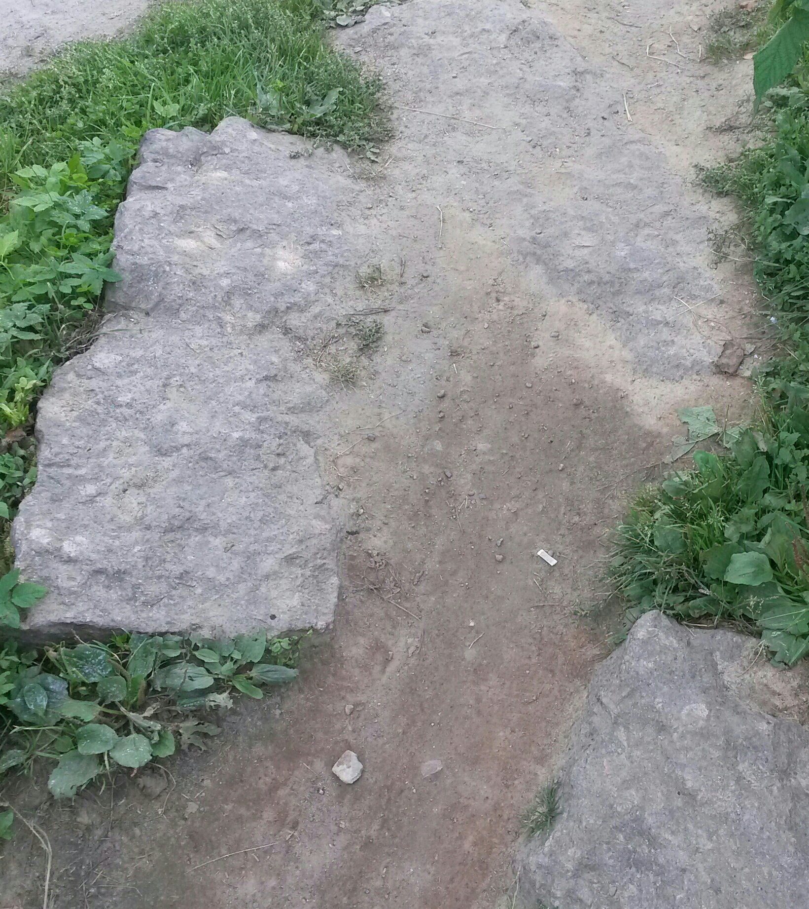 В соседнем квартале в дороге лежат два фундаментных камня. В этом месте по карте тоже были постройки.