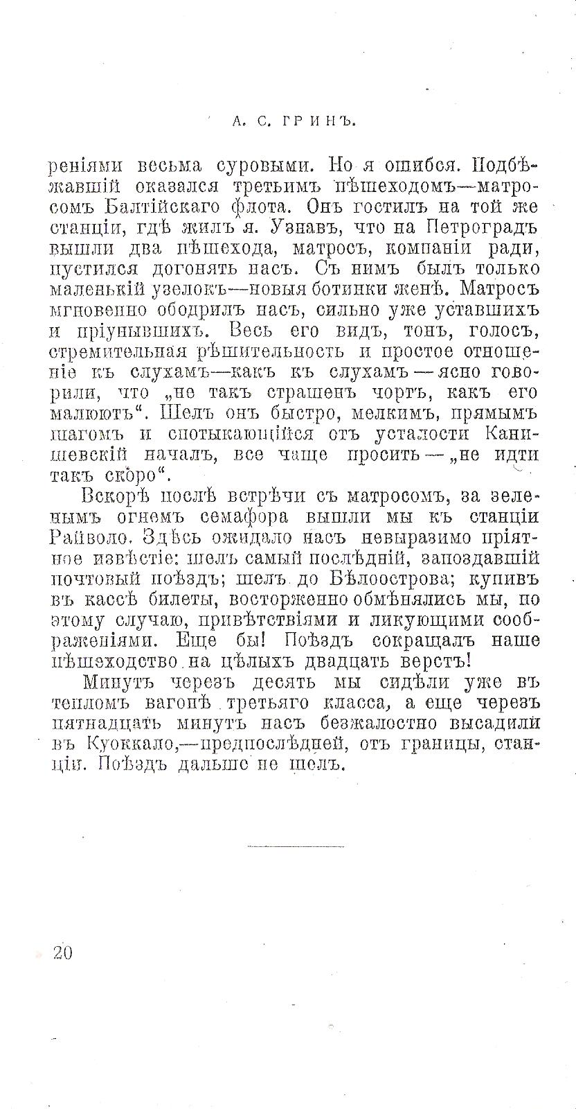 Предлагаю полный текст рассказа А.С.Грина,,в дальнейшем, преместить в тему "Мемуары о Белоострове".
