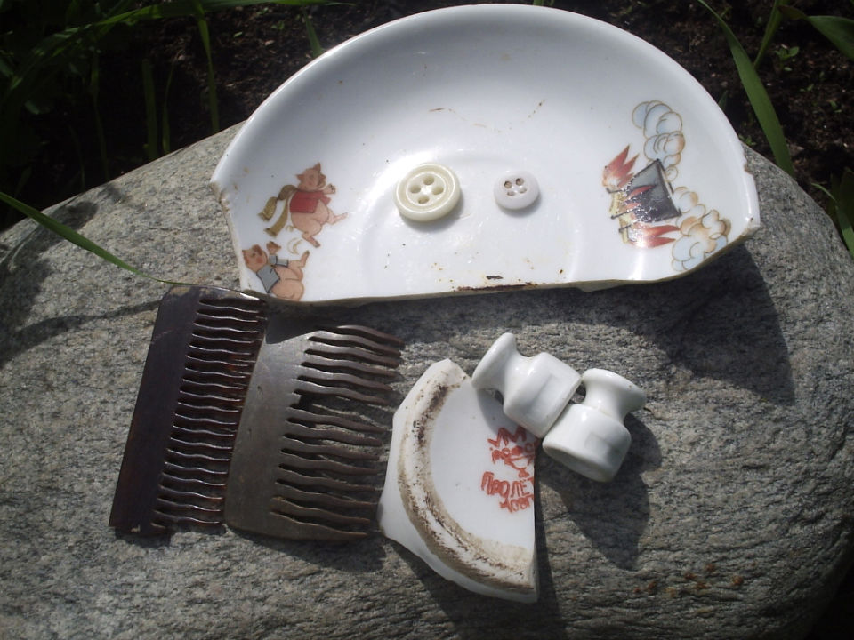 На урочищах финских поселений попадаются элементы вещей русских переселенцев.Точнее остатки бытовой утвари.