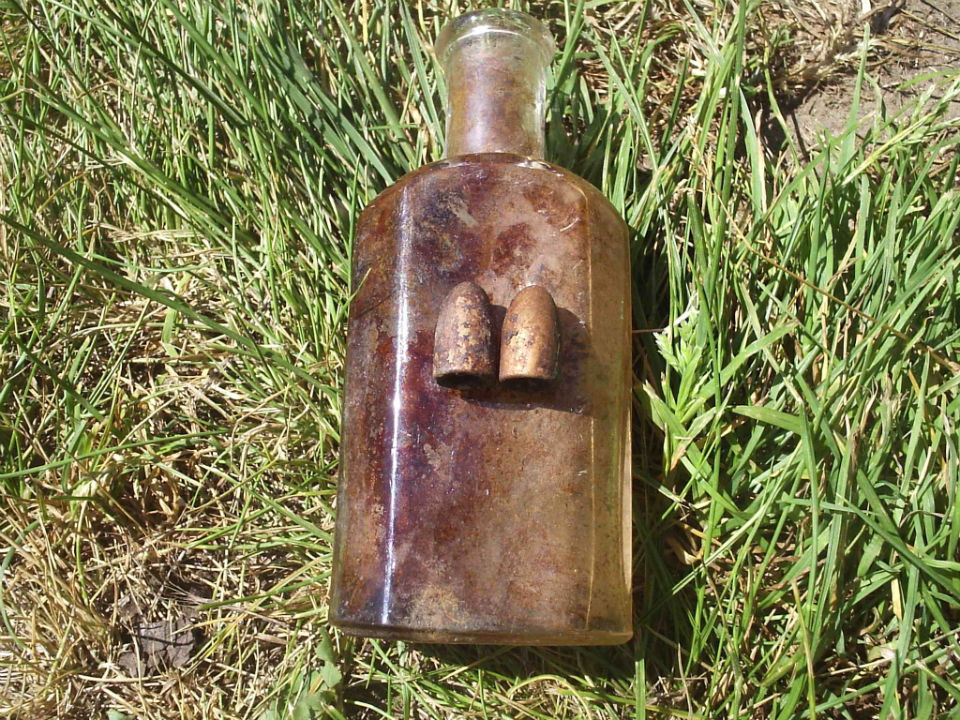 Пули на пузырьке финские. Судя по виду, в теле вряд ли были, не мятые, и нарезов не видно, хотя, МБ, так снято. Кто-то развлекался.