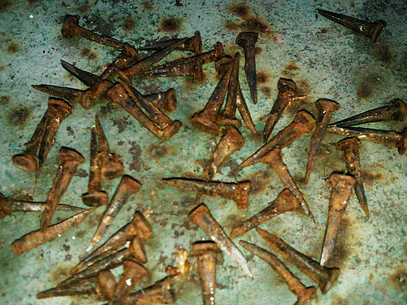 Снимал сей мешок-обивку, выковыривая вот такие вот конические 4-гранные гвоздочки. Тоже занятно