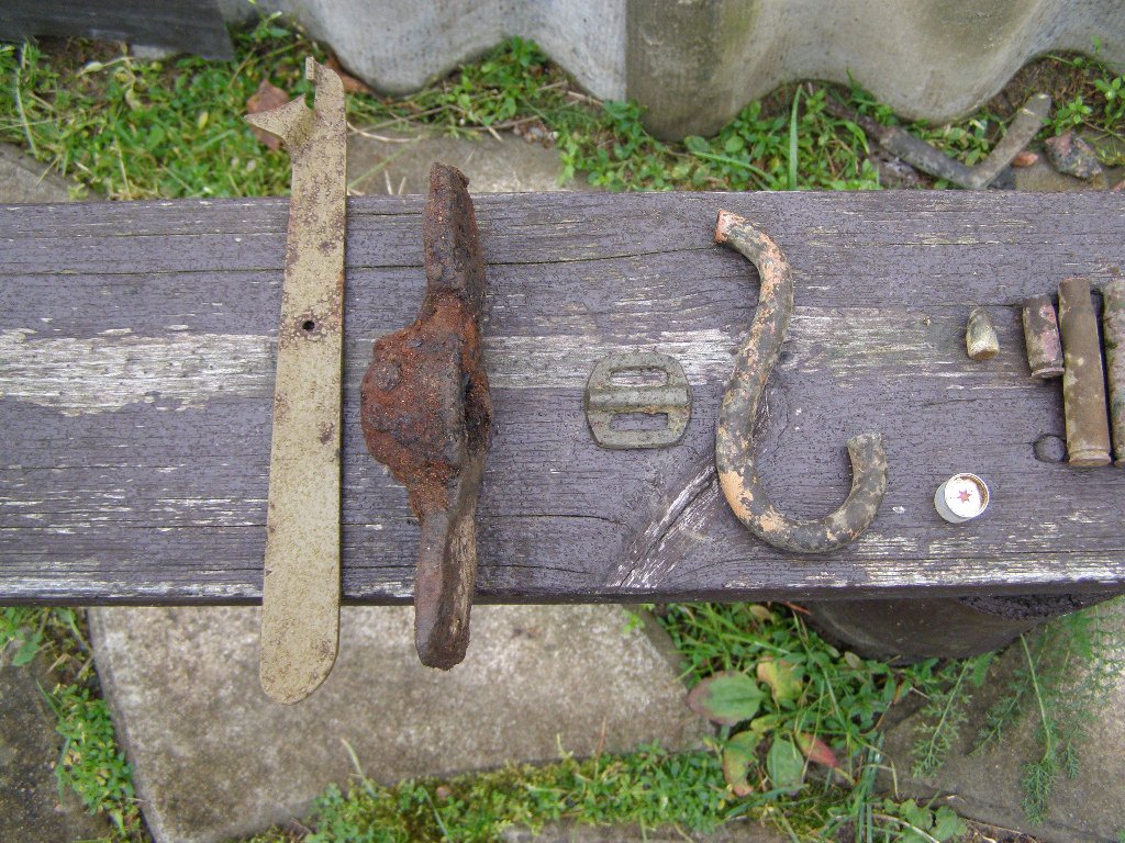 Нож от цинка найден возле батарей-скорее всего современный.Молоток каменщика-в Светлой горе.