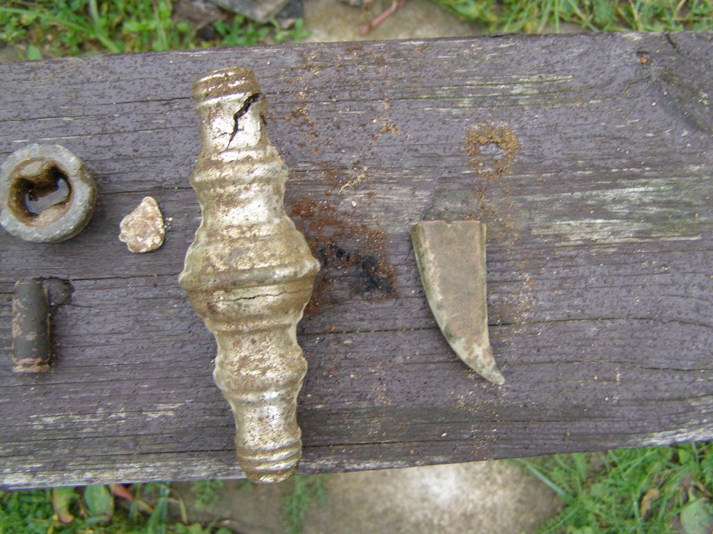 Деталь от кровати скорее всего.И наверное,наконечник от ножен-Светлай гора.