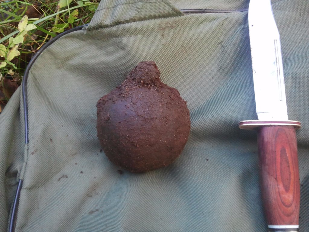 Вот нашел близ Тонтери в финском блиндаже.Совершенно круглый металлический шар с небольшой выступающей частью.Диаметром где-то 80 мм.Ковырять не стал-вдруг неизвестный ВОП.А может часть финской спортивной гантели? :D