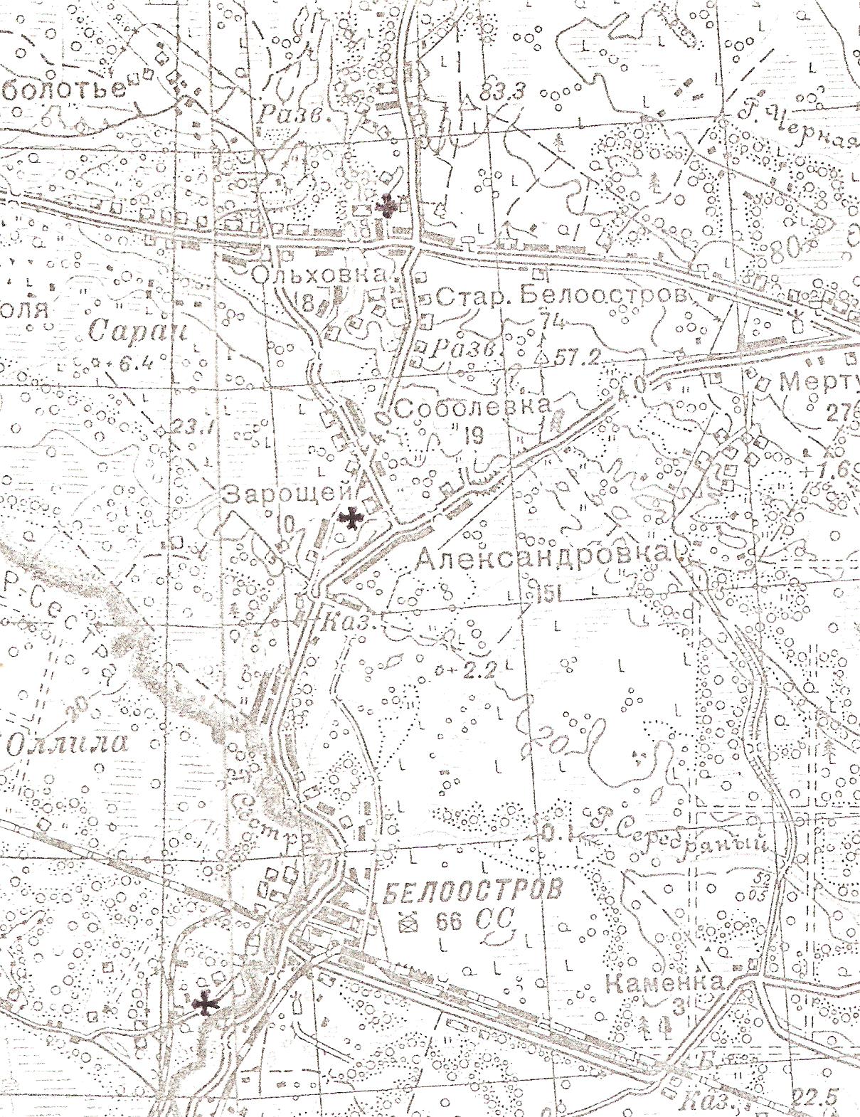Прикрепил фрагмент из карты ГШ КА по данным на 1941г. с др. масштабом.