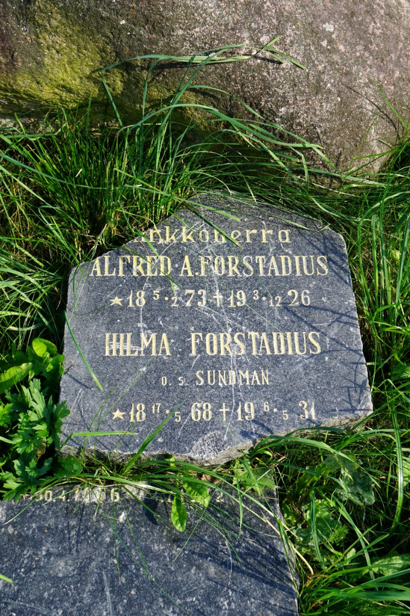 Отец и сын Форстадиусы - наиболее известные пасторы Валкеасаари. Отец был похоронен здесь, на кладбище у старой кирхи. А сын, как выясняется, был похоронен в Кивеннапе, ибо в последние годы служил там. Вот его надгробие на церковной горе: