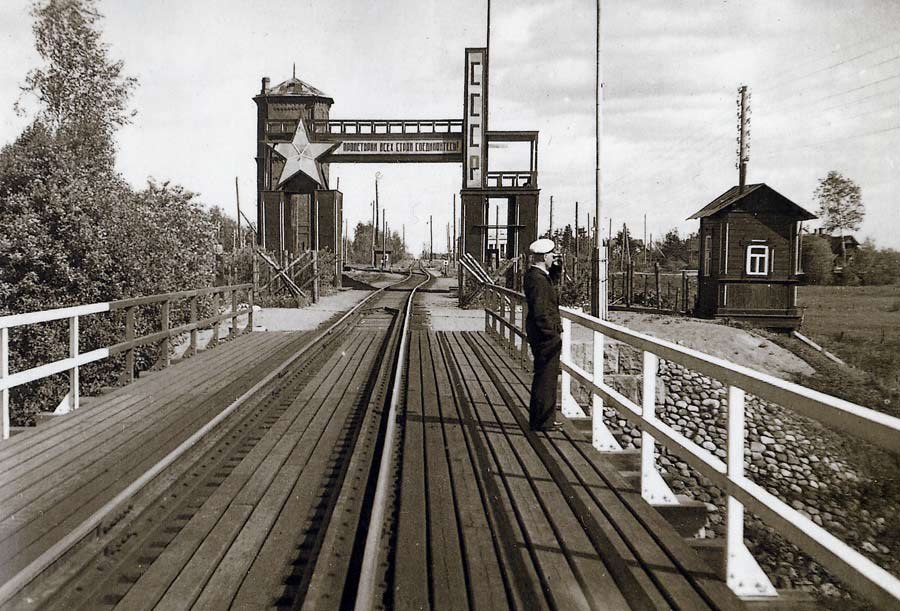 Буквоед писал(а):На днях вКонтакте выложили известную, в общем-то, фотографию белоостровского пограничного моста, но в очень хорошем качестве. Благодаря этому сквозь правую часть арки с лозунгом можно отчётливо увидеть недавно (фото 1935 г.) построенный новый вокзал.