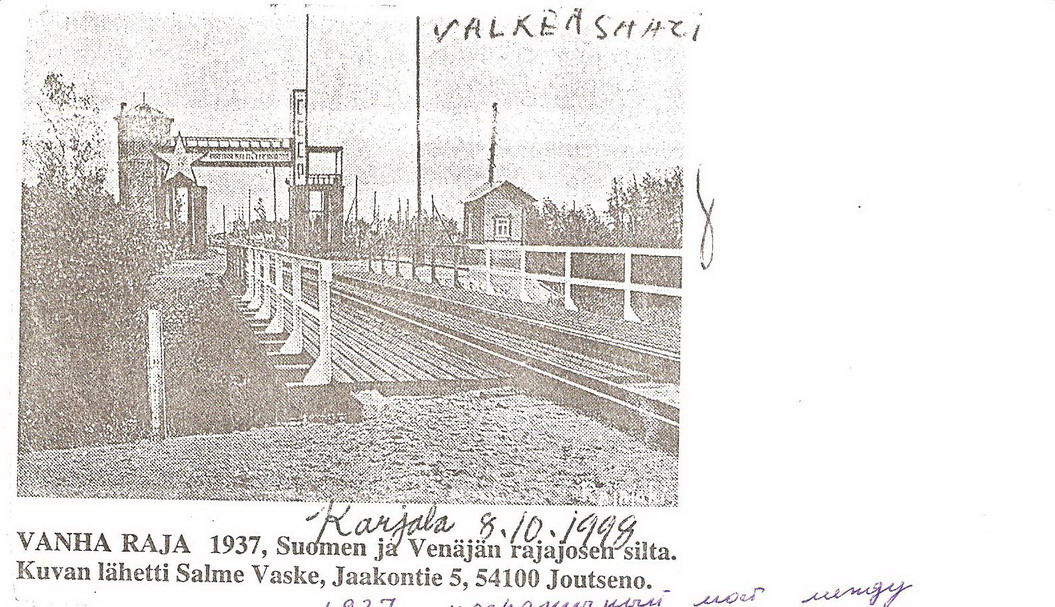 Похожее фото моста на фоне ворот с датой 1937г. было опубликовано и привез его в Белоостров пастор из Америки в 1998г..