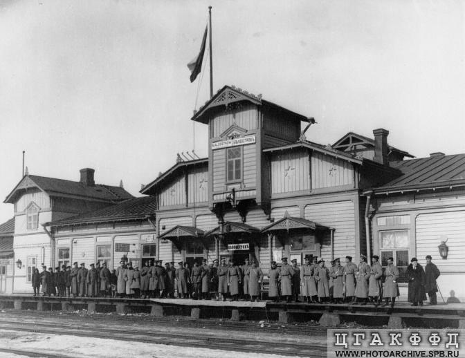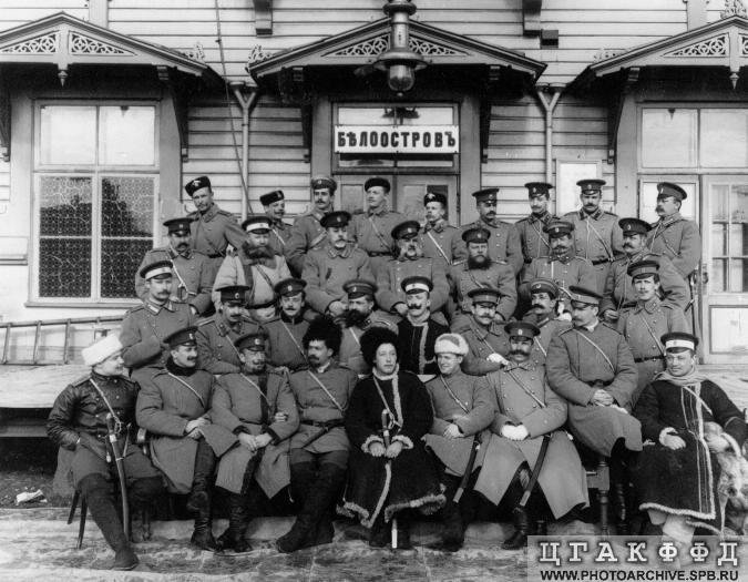 Третье фото было опубликовано в газете "Сестрорецкие берега" №...Aqua$erg писал(а):Первая фотография есть в статье 100 лет назад на станции Белоостров, Вторая - в статье Люди и грузы, там же есть аналог третьей фотки (Группа офицеров и стражников...), только в той фотке больше людей. Но усатый офицер в центре - тот же