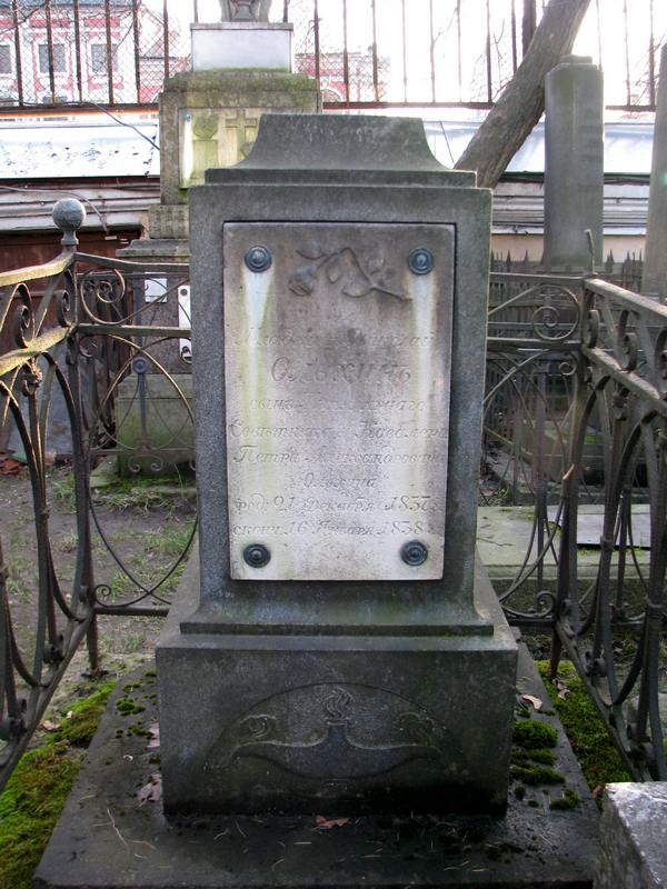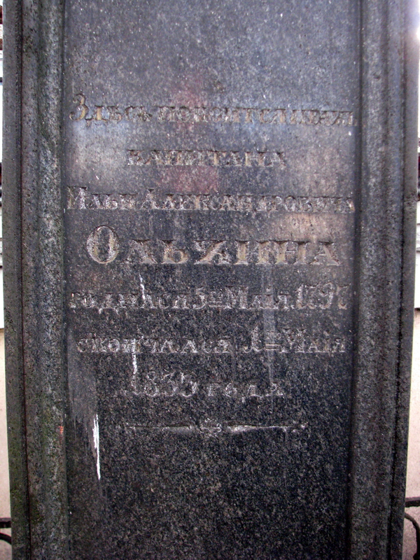 Osbourne писал(а):В Лавре захоронен Ольхин Илья Александрович (1797-1833), капитан. Там же рядом - некто Ольхин Сергей (1807-1828), Ольхин Николай, умерший в 1838 младенец, сын титулярного советника Петра Александровича Ольхина, Ольхина А. А. (1811-1812) - младенец, дочь Александра Васильевича.