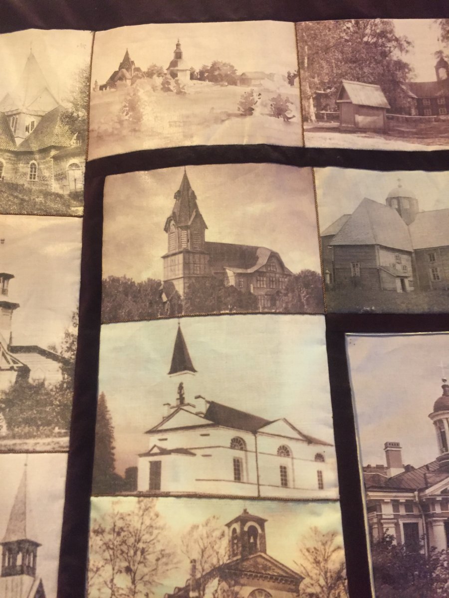 Вот ещё по поводу кирхи — в лютеранской кирхе Святой Марии на Большой Конюшенной, что под юрисдикцией Церкви Ингрии, висит вот такое вот одеяло (полотно?) с изображениями всех когда-либо существовавших кирх на территории Ингерманландии. Присутствует там, конечно, и наша кирха: