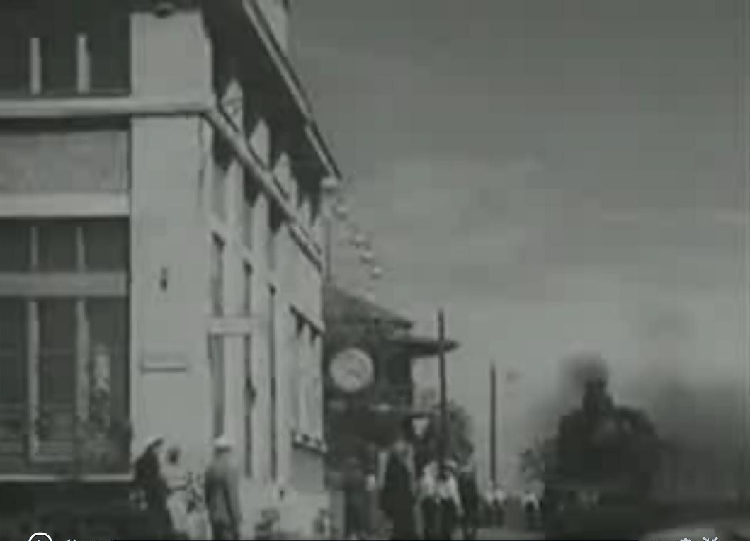 Показан эпизод прихода поезда на ст. Белоостров со стороны Ленинграда в сторону Курорта. Видна торцевая часть здания вокзала арх. А. Воробьева постр. в 1934г., 2-х этажное здание централизации арх. Вайтенса и на заднем плане дом Копытковских.