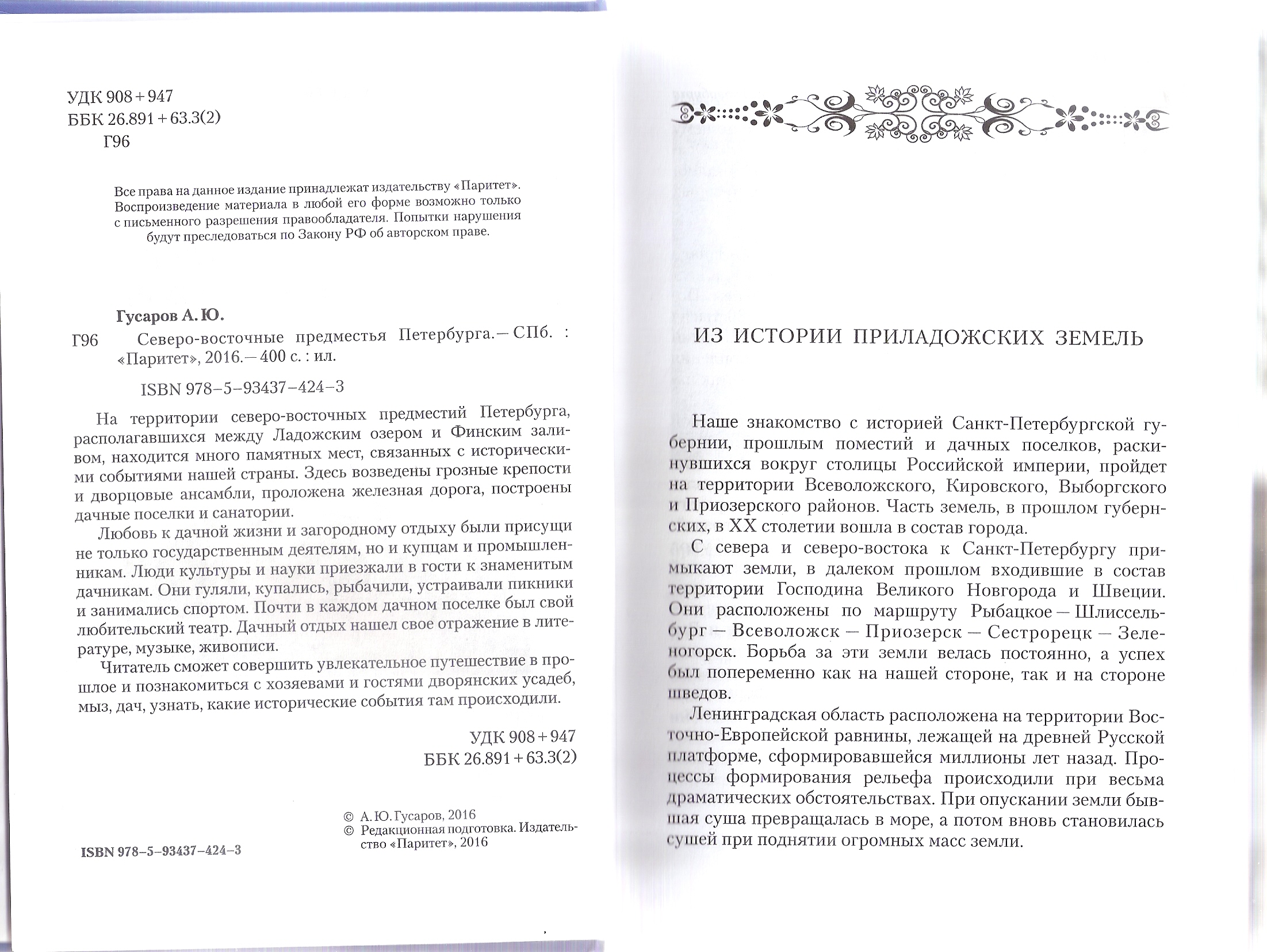 1. «Северо — восточные предместья Петербурга» СПб 2016г. (400с.) Тираж 1500 экз.