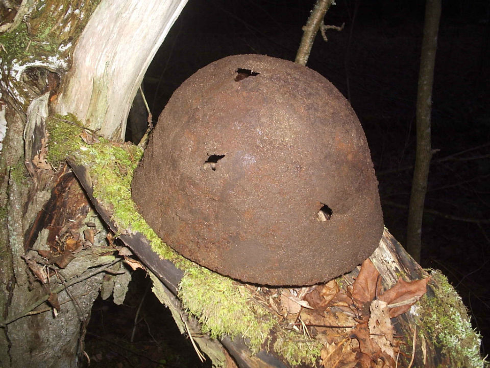 Вот все что удалось найти на месте предполагаемого штаба 7 пехотного полка Финской армии в районе Термолово.Останки шлема М-18...Поиск невозможен по причине килограммов современных осколков на 1 кв.м.