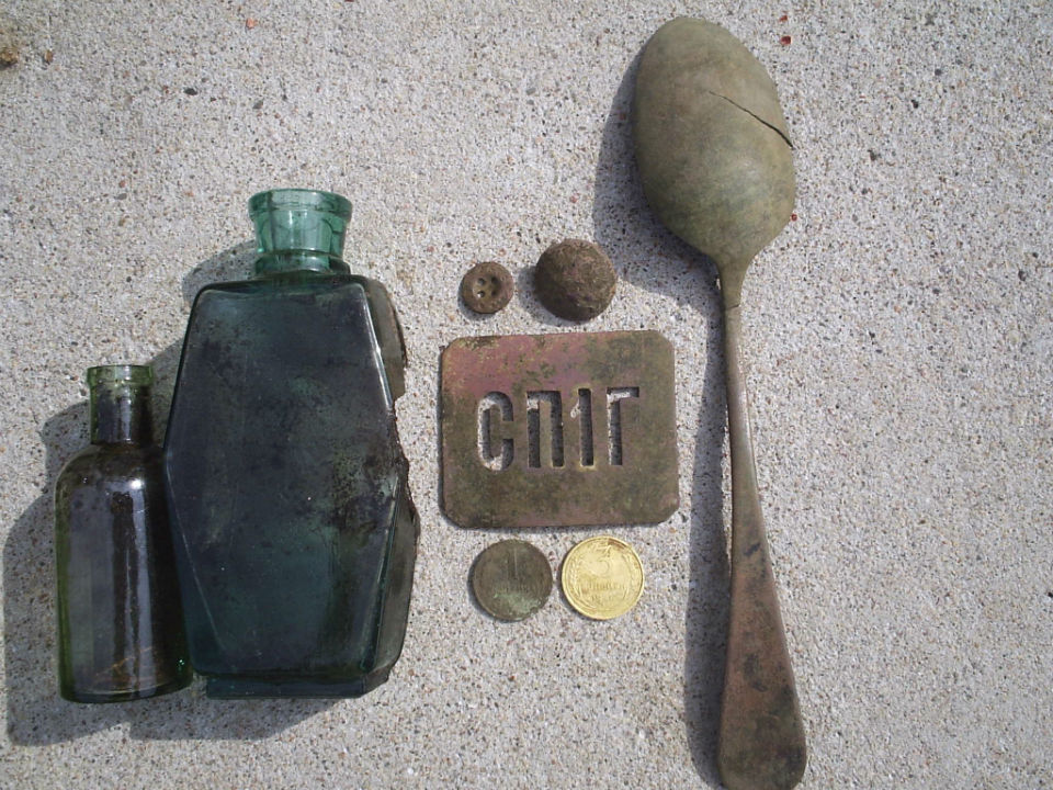 - Пуговицы и монеты в плохом сохране.Одну марку похоже расплющили чем-то.Вид как из под колеса ж/д вагона.