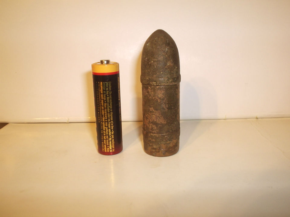 Уже стало темнеть.Пора было уходить.И вдруг хороший сигнал ,,МД,,,- металлодетектора.И вот она находка из цветного металла.Сначала в сумерках не понял.Ну и ,,пулька,, здоровенного калибра попалась.