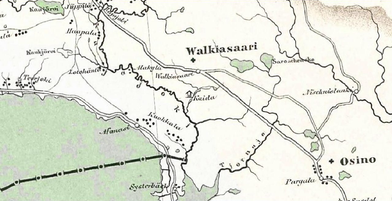 ) в Белоострове. И впервые, насколько я помню, чтобы фабрика (или мельница?) на карте была указана по фамилии Кайдановых: Kaida.