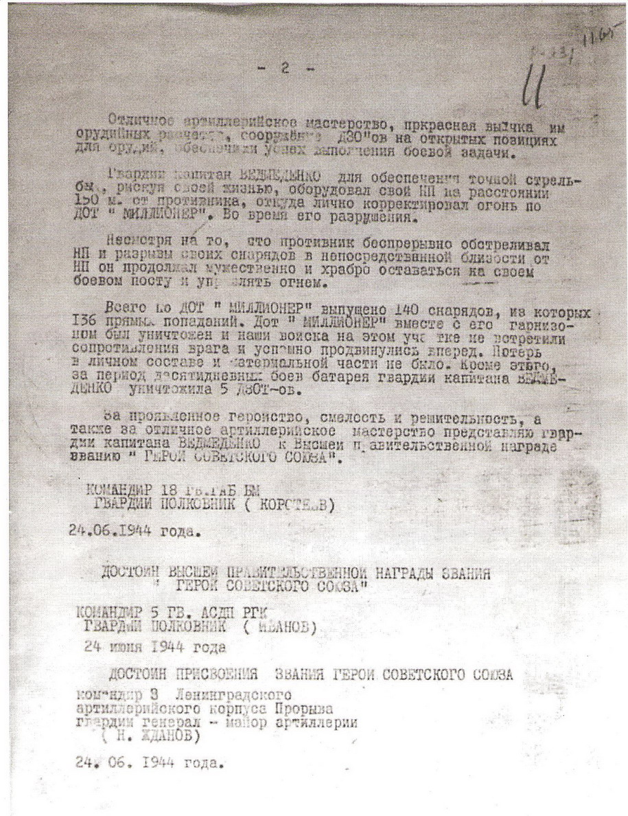 1. "НП" Ведмеденко находился на линии огня гаубиц в 150м от финских позиций.