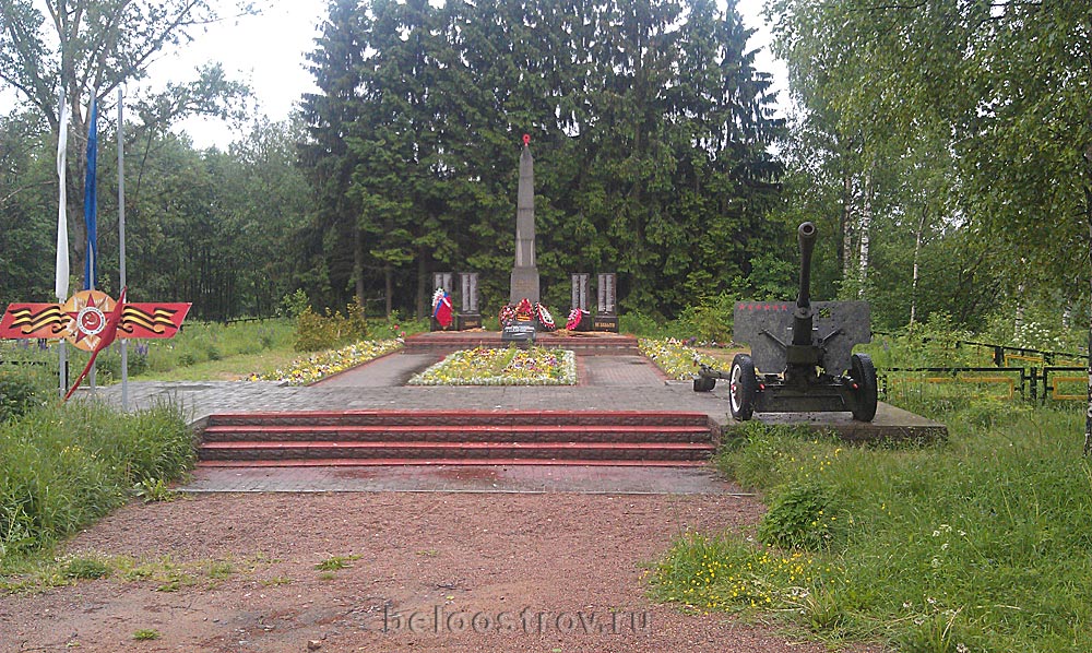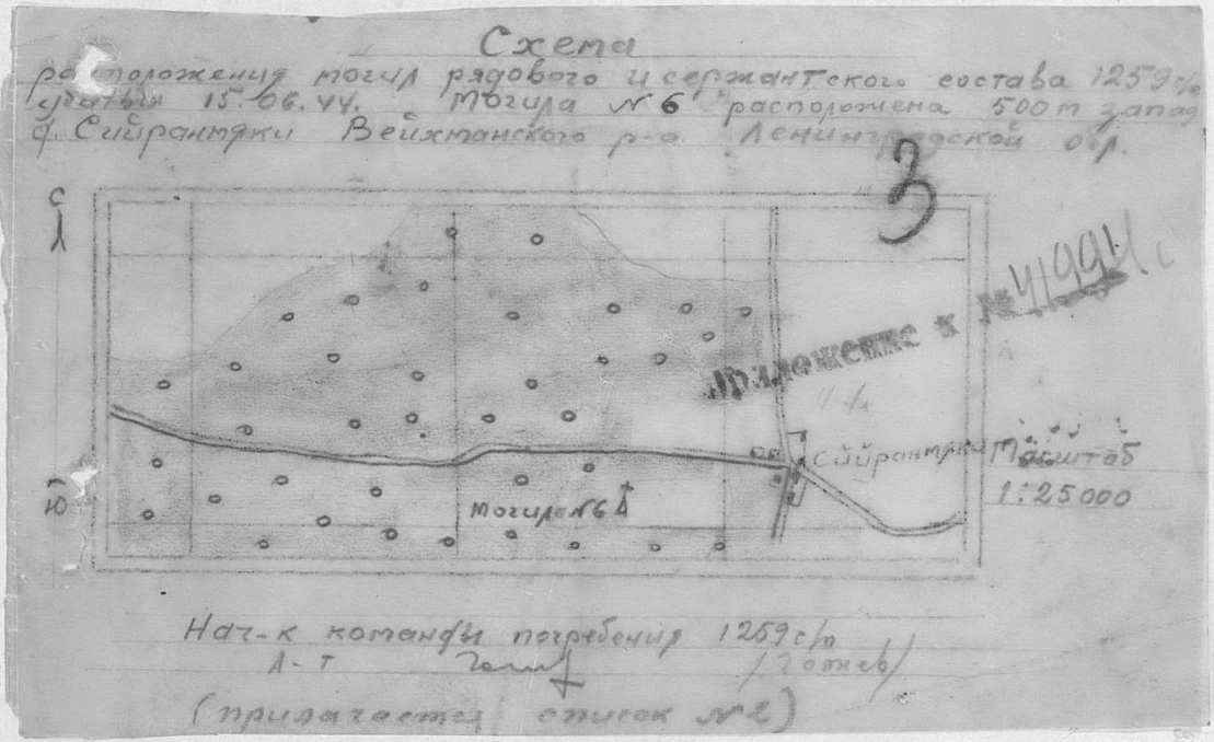 Дело в том, что на схеме и карте памятники показаны в разных местах. Захоронение - южнее старой финской дороги, а памятник - южнее бетонки. Кроме того, в Книге Памяти http://lenww2.ru тоже ничего нет.