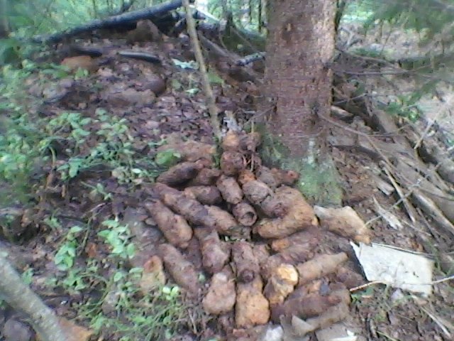По одним и тем же местам ходишь - тут коробки с патронами вылезут, тут минометные выстрелы, да, все нужно класть на видное место и под деревья, чтобы пешеходы-грибники ненароком не наступили.