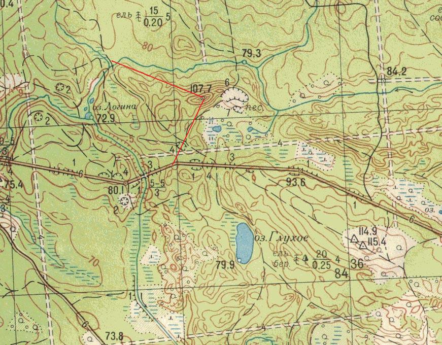 Отметил место на карте. Это у высоты 107,7. С северной стороны высоты ( там она очень крутая, высотой метров 20) проходит тропинка. На тропинке прямо под горкой и лежала эта башня. Раньше мы там ходили- ее не было.