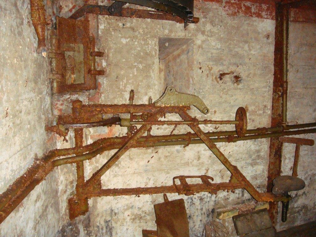 Хозяйка участка вполне адекватная леди.Рассказала,что когда участок с ДОТ достался им в собственность (они были одни из первых заселившихся),там был гадюшник и общественный туалет.2 из 3-х станков демонированы уже были.Маска Юшиновская была на месте.Но её пришлось демонировать под трубу(.Вцелом ДОТ в неплохом состоянии.На нижнем этаже сохранилась почти вся электрика и ФВУ.