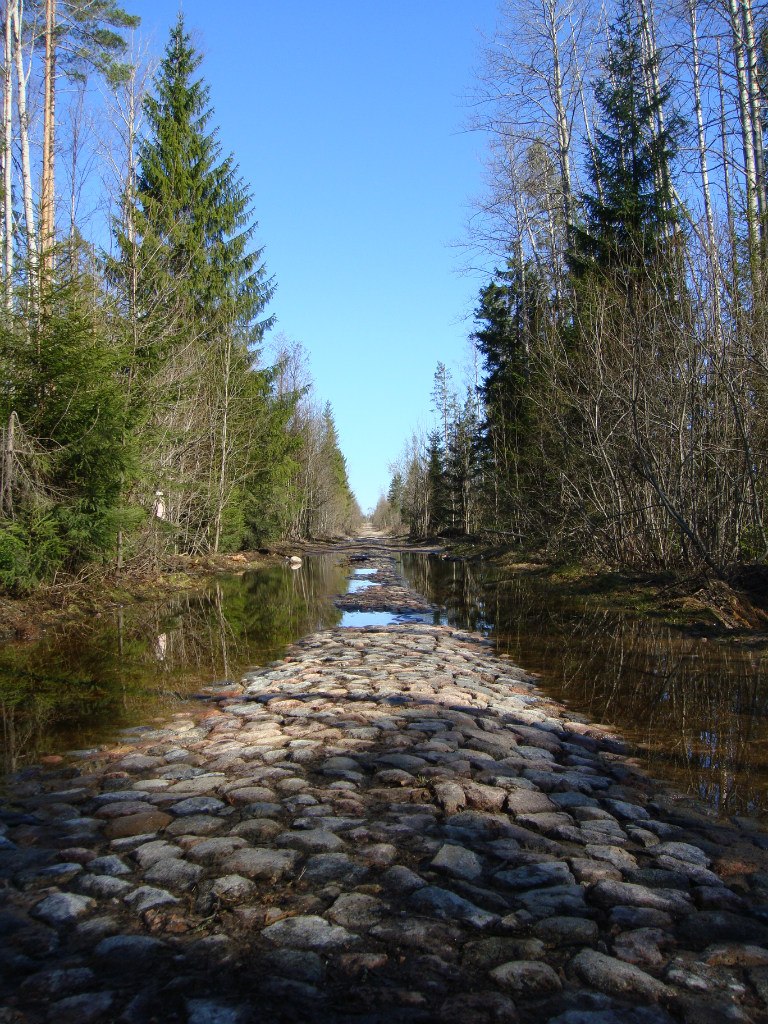 А я сразу же вспомнил дорогу к стрельбищу на Медном, тоже когда-то вымощенную булыжником. И еще одну дорожку в Васкелово.