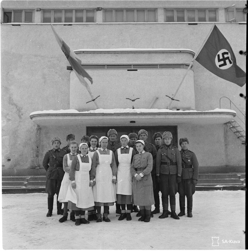 На первом финские солдаты на каком-то празднике на берегу озера. На заднем плане этот беленький домик. Фото не из архива
