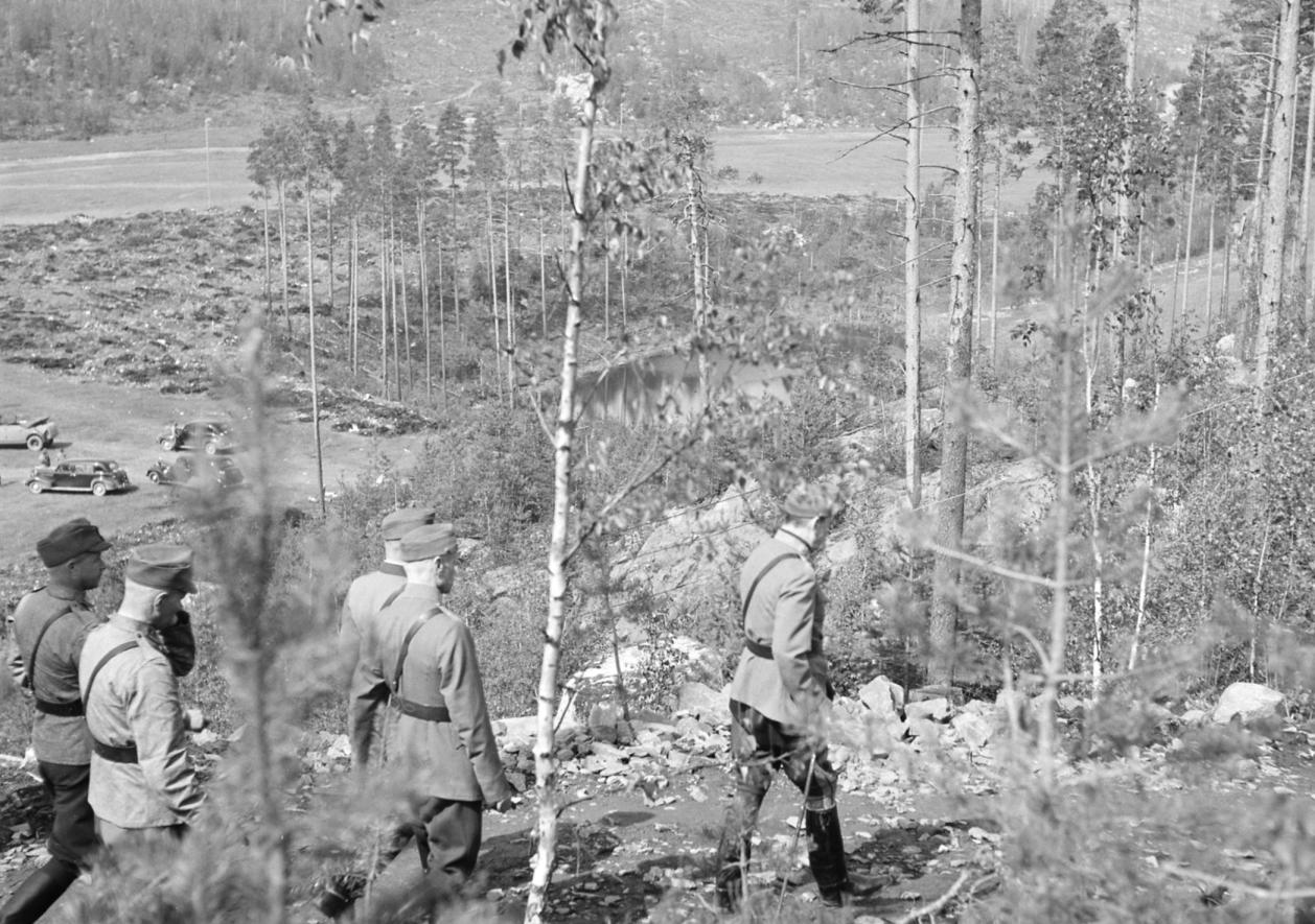 Большая группа фотографий о поездке М в карельскую Кархумяки (Медвежья Гора, Медвежьегорск) 20 июня 1942. Он инспектировал строительство комплекса оборонительных сооружений на г. Лысуха. Оказывается, финны приняли решение о строительстве новых укреплиний ВТ, У и т.д. еще в ноябре 1941. Когда, как говорится, еще ничего не предвещало... Можно смотреть где-то с 92637 до ...669. Финские военные операторы снимали всё на камеру