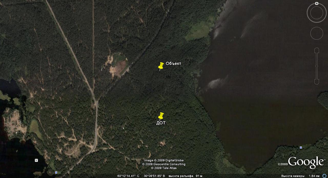 Конечно, многие товарищи об этом знают, но не все. Есть кроме Гугла еще один неплохой сервис, называется maps.live.com. На нем отчетливо видны некоторые доты, которые в Гугле совсем незаметны. Упомянутый Колобок там виден очень хорошо. Я всегда подверяюсь сразу в двух местах - и в гугле, и в мапсе.