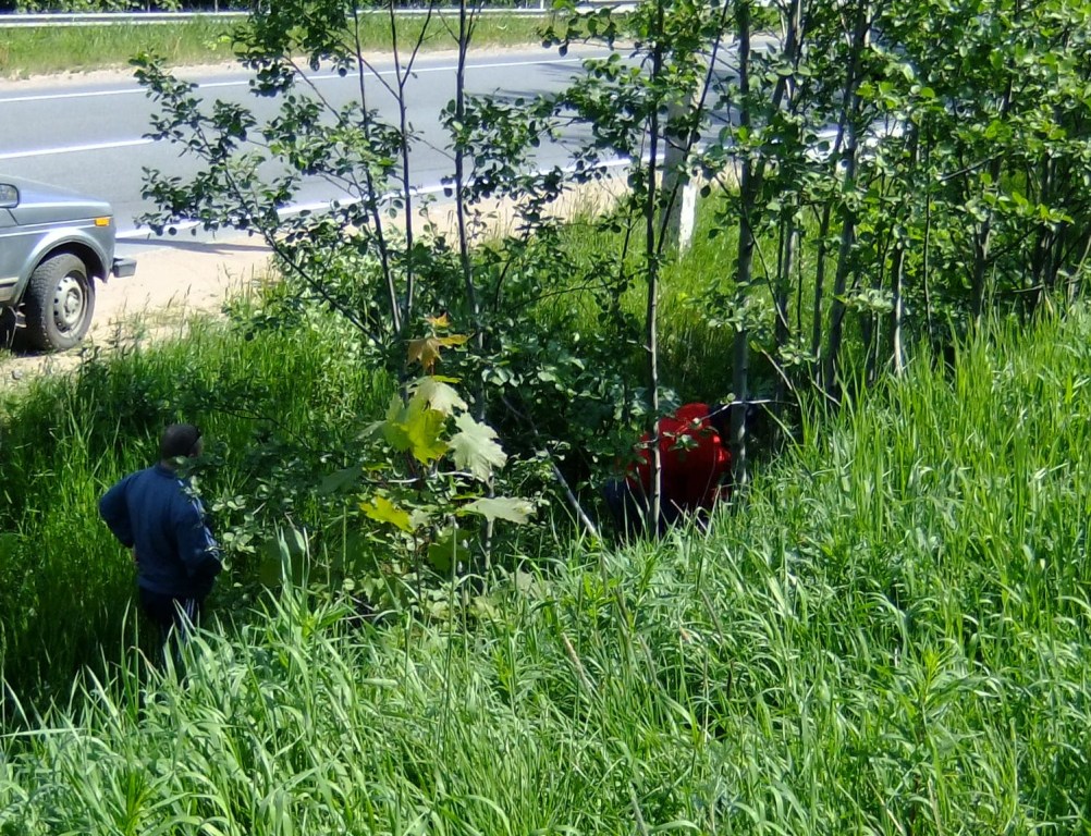 Ещё до начала встречи Свик успел очистить откос от зарослей, и теперь временный памятный знак будет хорошо виден с дороги