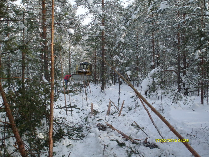 Сегодня в Белоостров на кольцо автобуса маршрута 493 (Белоостров-сады) прибыл транспортер с мощным бульдозером марки ЧТЗ, мощностью 180 л.с., который проследовал своим ходом по ул. Вокзальная до ул. Лобачика. Далее он повернул на эту улицу и углубилсяв лес (это уже территория МО Сертолово Всевлолжского р-на). Бульдозер двигался как танк, ломая мелкие сосны и выкорчевывая или ломая средние березы. Добравшись до небольшого песчаного острова в заболоченном лесу и прицепив за трос бронеколпак поволок его до перекрестка ул. вокзальной и Лобачика. Затем поехал за вторым бронеколпаком.
