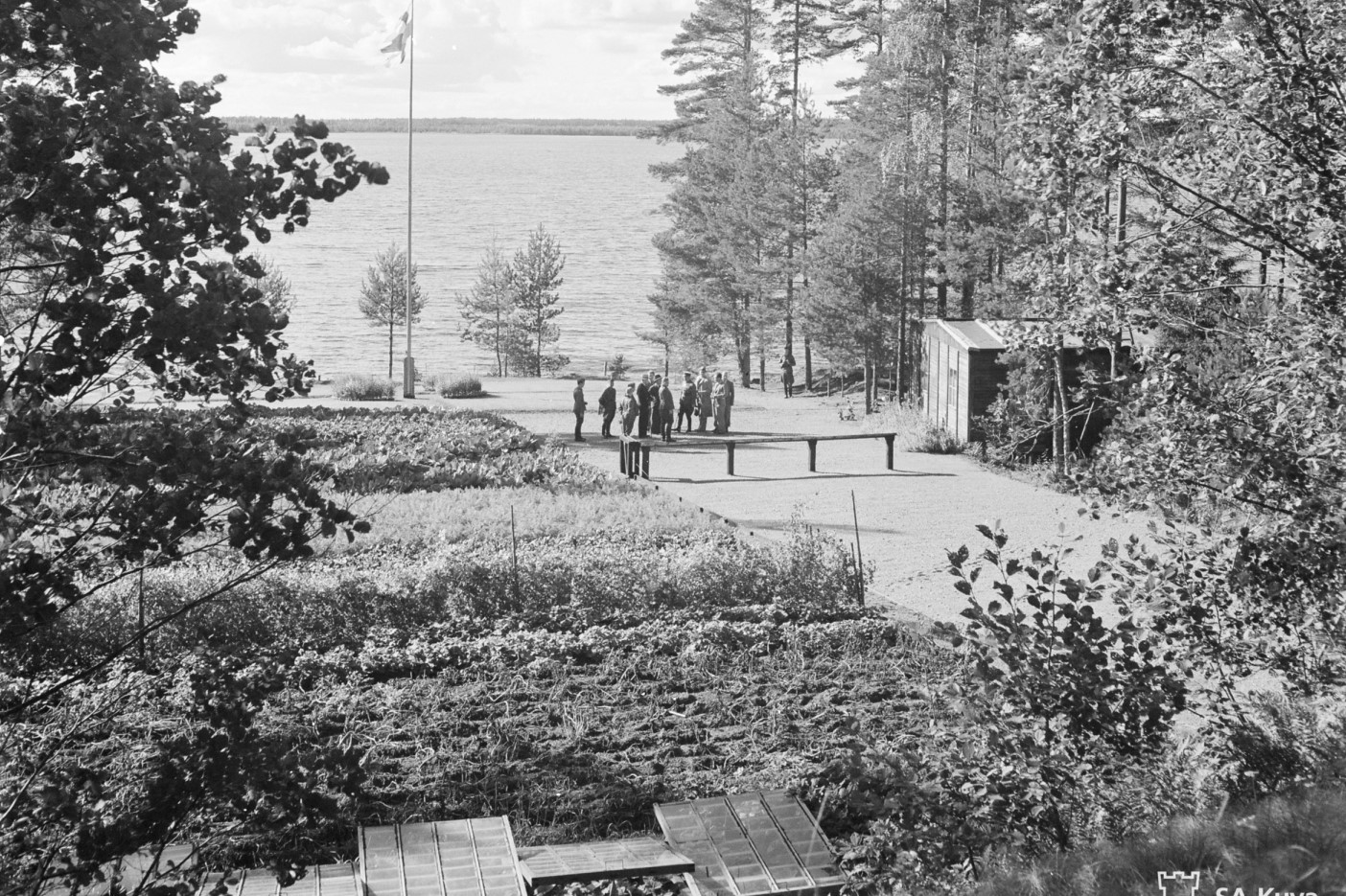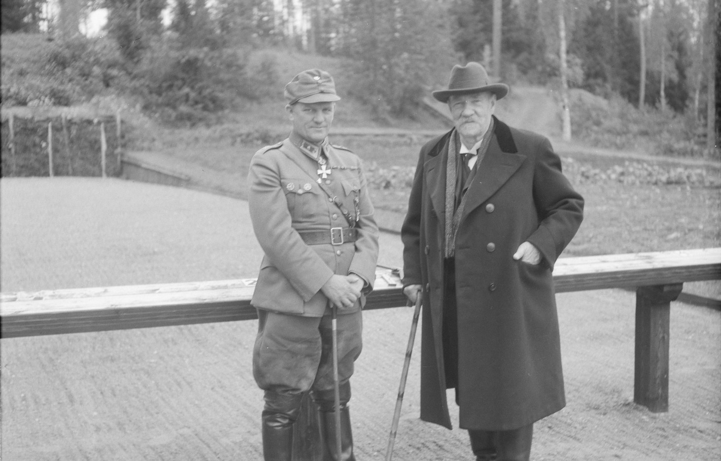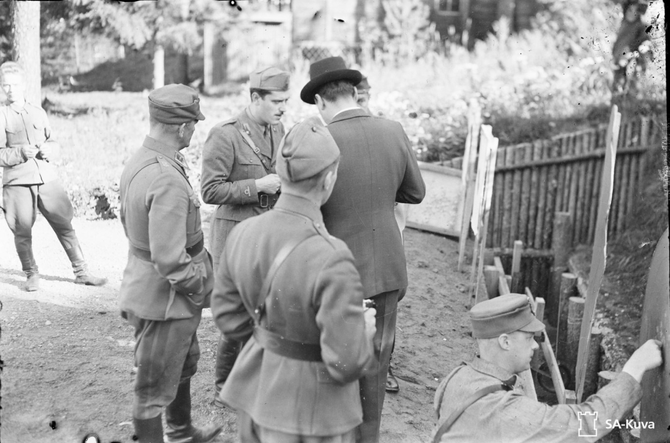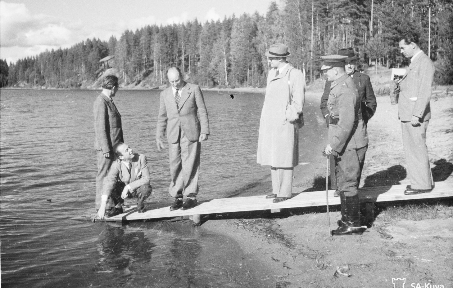14 октября 1942 года Паяри посетил сам дедушка М со своей свитой. Потом поток не иссякал. Пёрли, кому не лень. Некий итальянский военный фотокор лейтенант Пеллегрини приехал специально пострелять из пекаля. Настрелялся, видно, вусмерть. Потом Пеллегрини еще в архиве присутствует. Геройски позирует на фоне пушки, нацеленной в Финский залив. К Паяри приезжали и братва по оружию. 4 июня 1943 года на побывку прибыли два генерала сс. Один - уже небезызвестный (где-то мелькал в обзоре) Феликс Штайнер. На тот момент он командовал 3 танковым корпусом сс. Про корпус информация разная. Но, вероятно, тогда он формировался-переформировывался и Штайнеру было нечем особо заняться. Второй дядя с очень интересной фамилией – без ста граммов и не произнести. Маттиас Кляйнхайстеркамп. Во как! Тоже, между прочим, группенфюрер сс. Другие к Паяри и не ездят. Он командовал тогда 6 горной дивизией сс «Норд» ( информация на этот счет тоже разная). Дивизия воевала где-то в северной Норвегии. А командир совершал турне в это время по Карельскому перешейку. Ну и Эквист постоянно в этой компании. Заезжал и генерал Эрфурт, награждал отличившихся Железными крестами. Потом обмывали это дело за красивым столом на природе. Приезжали разные гражданские делегации. На фото, похоже, делегация шведского парламента. Они очень любили бывать на перешейке. И, конечно, самый-самый дедушка ( даже дедушковее самого М) Свинхувуд приезжал к Паяри пострелять.