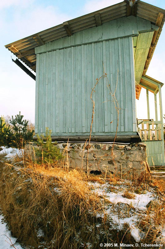 Поблуждав безуспешно по округе, пришлось залезть с трубки в и-нет и посмотреть таки как выглядит халупа на kaur.ru. Иначе бы и не нашли. Стоит на пригорке, на высоком фундаменте, который выглядит именно как фундамент, а не как часть фортификационного сооружения.Буквоед писал(а):С трудом разглядели среди садов и домов.