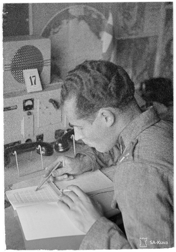 Это т.н.sotilasmesteri, что буквально переводится как солдат-мастер, а по иерархии соответствует нашему теперешнему старшему прапорщику. Высшее неофицерское звание. Далее следовал уже первый офицерский чин - вянрикки. Присваивалось военным специалистам-выпускникам военной школы в Лаппеенранте. А вот с эмблемой действительно вопрос... Меч остриём вверх в специальных родах войск накладывался на соответствующие атрибуты (шёстерёнки, топоры, лопаты, лиры и пр.) Здесь же - голый меч. Надо понимать, означает "мастер на все руки" :D Да и по фоткам видно: он и с торпедами возится, и спецсообщения расшифровывает.