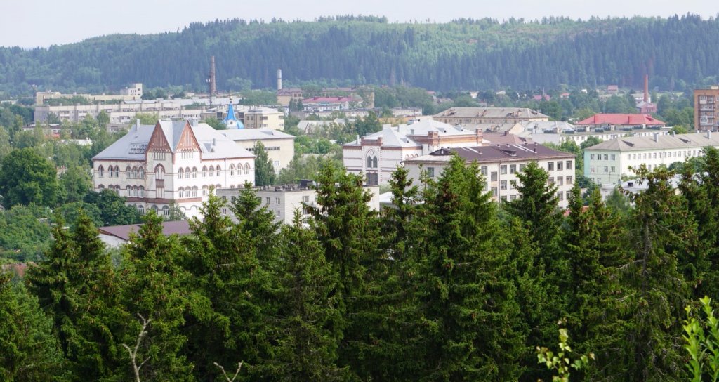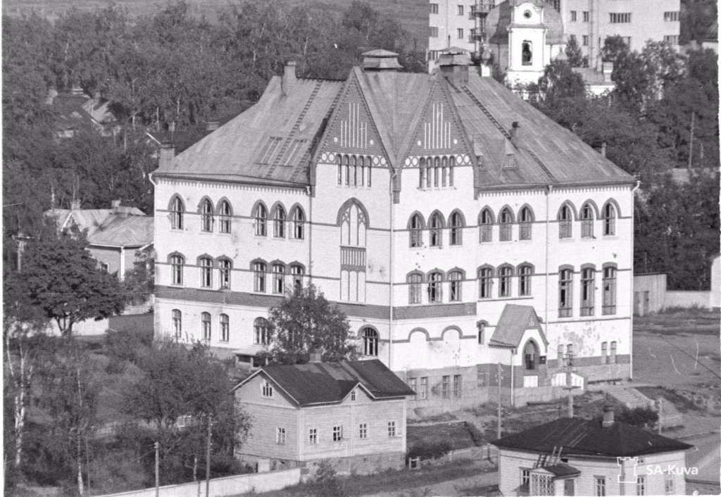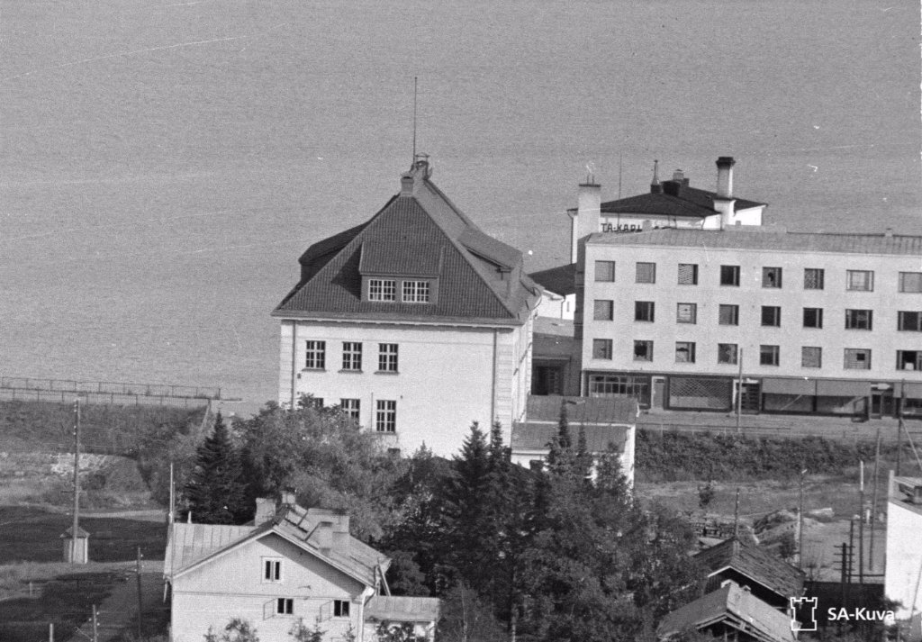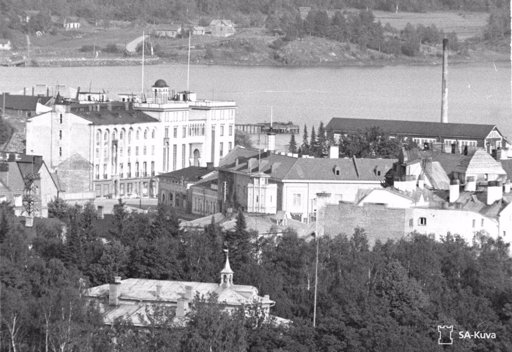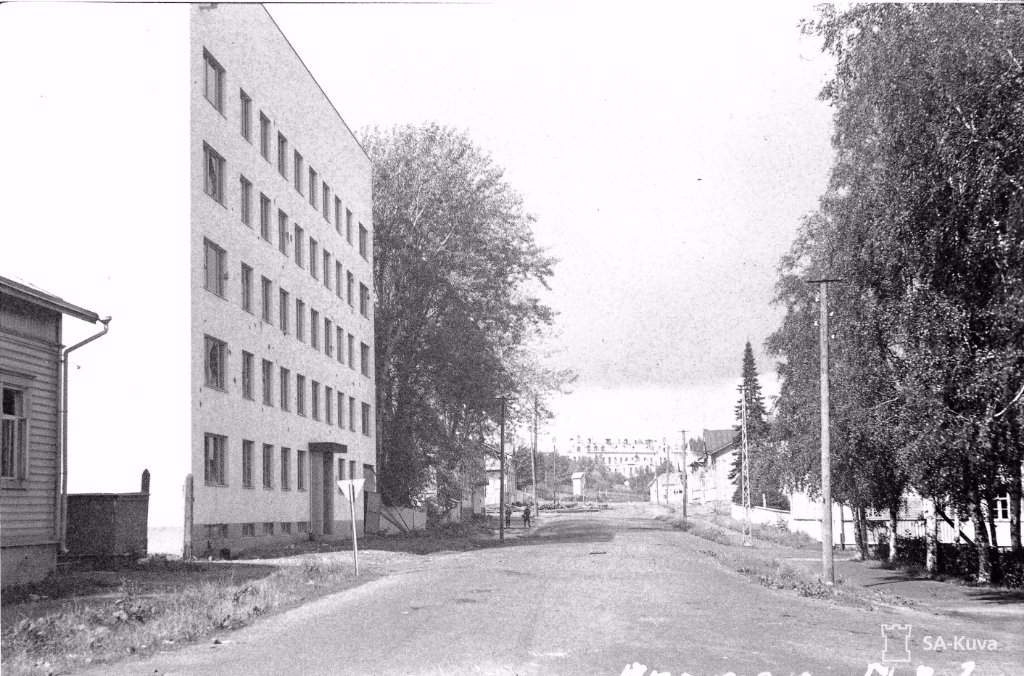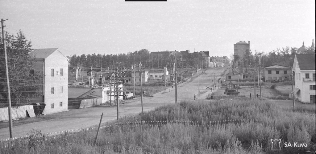 42-43-44 На первом слева дом с башенкой, это улица Кирова, 6. По центру видна каланча пожарной охраны на Карельской 15. На втором видна лесопилка с трубой. На современном снимке видно, что большая труба - новодел. Лесопилка с трубой сохранились. Теперь это неплохая гостиница Пийпун-Пиха (Piipun Piha) по адресу Промышленная, 44. Историю здания можно посмотреть на их сайте.