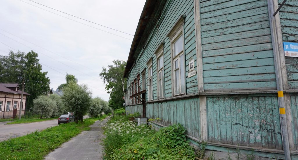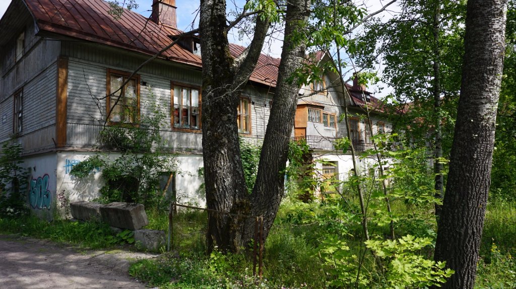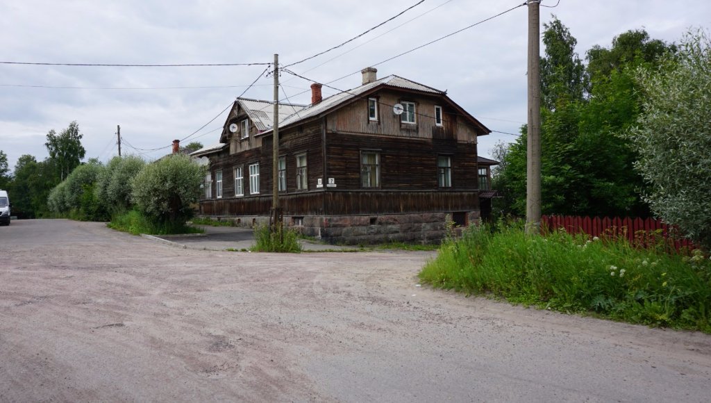 45-49 Из первых двух фото сделана панорама в теме про поездку по Карелии. На 47 скрине слева видны остатки госпиталя, вдали хлебозавод по адресу Маяковского,3. И водокачка на Петрова. На 48 скрине старый финский дом по адресу Железнодорожная, 13. На фото 34241 он первый в ряду из четырех домиков чуть левее центра фото. На 49 скрине (чуть дальше дистанция) слева дом обшивается, это Железнодорожная, 11 (второй в ряду из 4 домиков). Левее крыша дома №9