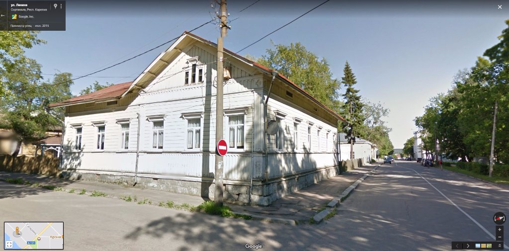 50-51-53 Это угол дома по улице Ленина,14. Вероятно, это самый старый дом в Сортавала. Год постройки 1839 и принадлежал он русскому купцу Красильникову. В нынешнем виде он стоит с 1876 года после небольшой перестройки. Оказалось, что у меня нет нормальной фотографии этого дома. Поэтому на выручку пришли карты гугл