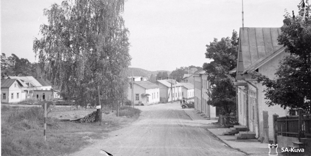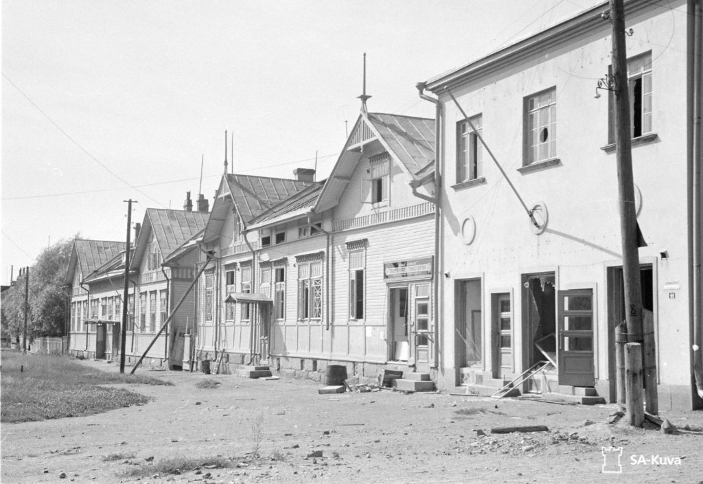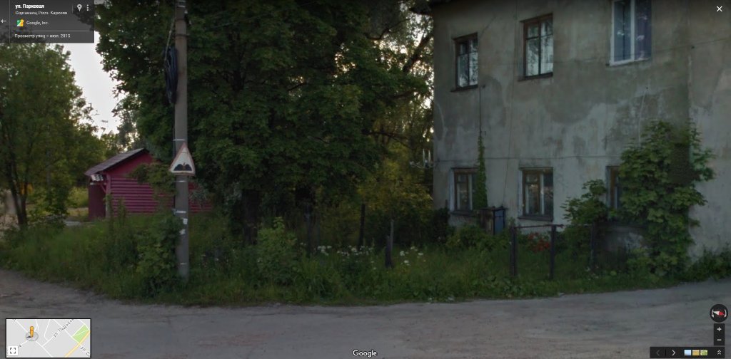 Есть в архиве такая фотография под номером 34784. Еще в прошлом году, когда я "ездил" по Сортавала на картах гугл, я ничего подобного не смог обнаружить. Длинный ряд деревянных домов без промежутков между ними и рядом маленький каменный. Ну, ладно - деревянные дома еще могли сгореть, но каменный-то должен сохраниться. В прошлом году ответа на загадку не нашел ( как, впрочем, я еще один дом "потерял". А он больше этого раза в два. Но на картах я его все-таки обнаружил. Вот ну ни разу по той улице не проехал, а он там и оказался