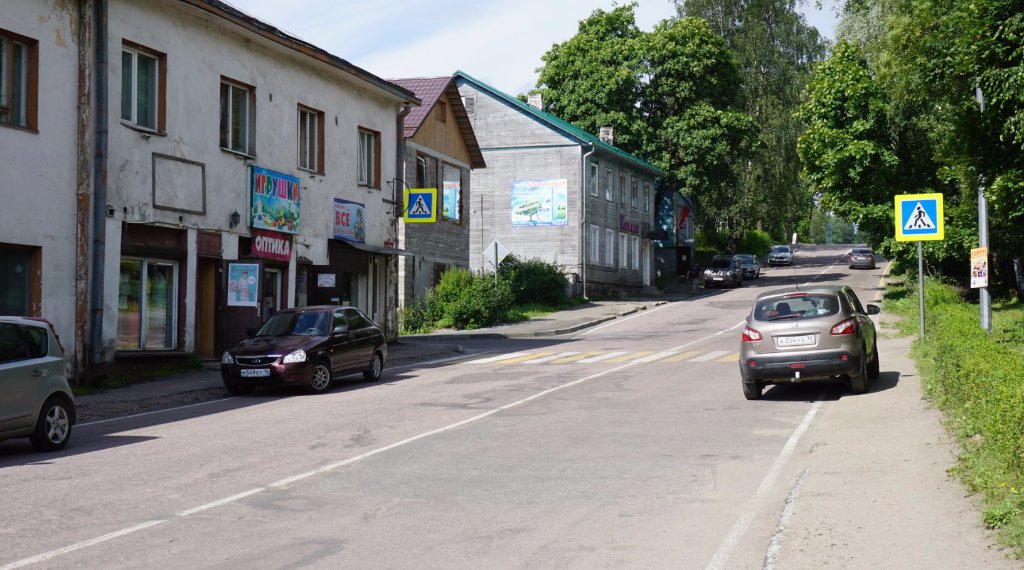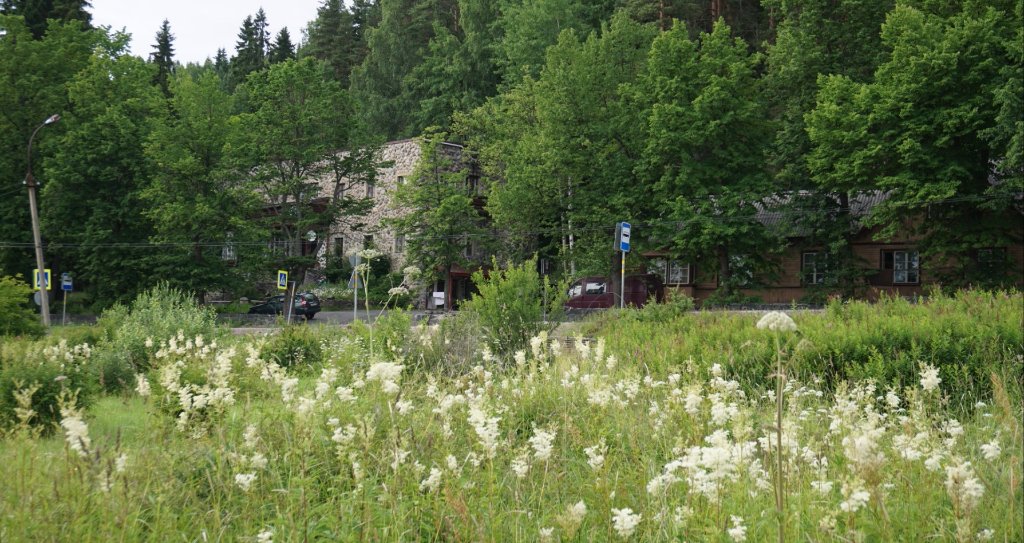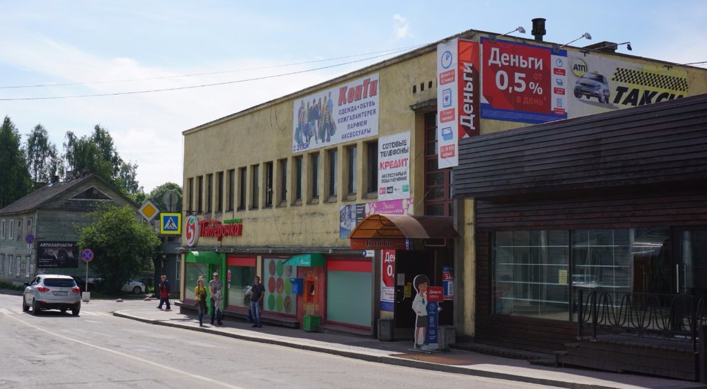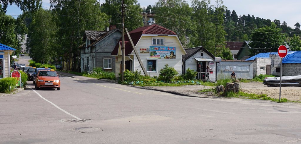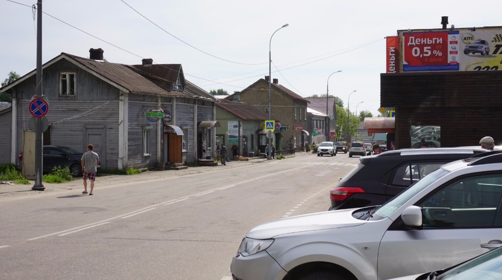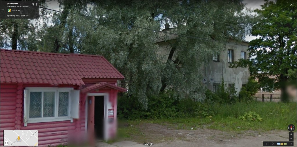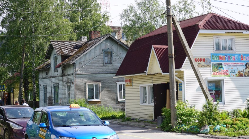 Но это же дом по улице Железнодорожная, 2, где я и на карте и в реальности раз 10 проехал. И он совсем не похож на народный дом с международной торговлей (а по запросу "народный дом Сортавала" в разных вариациях в интернете ничего не было). Вот же как он выглядит! Ни кругляшков, ни дверей с витринными окнами...