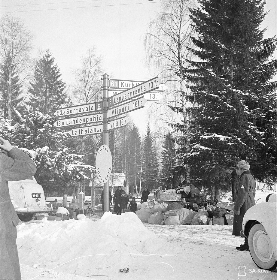 Первая пара фотографий. Архивное сделано 15 марта 1940 года и называется просто - Эвакуация из Ихала. На современной налево в Ихала, направо в Райвио и прямо это мы едем из Питера