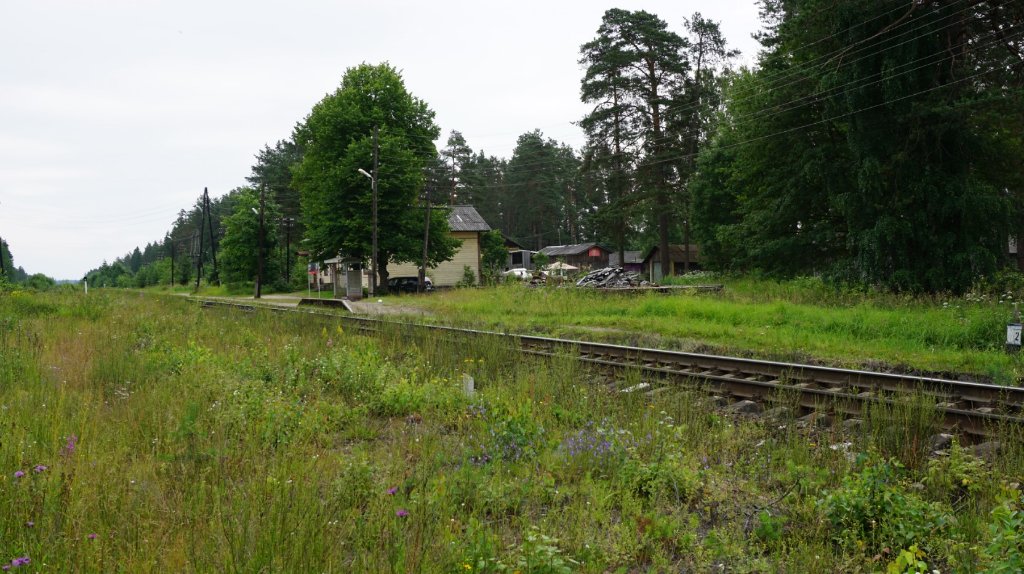 24-26 Фотографии железнодорожной станции Ихала. Грустный дядя-финн смотрит на снятые рельсы с одного полотна. Фото так приблизительно и называется в переводе (про снятые рельсы). Перед зданием станции и виден нынче разваленный домик багажного отделения. Второе полотно так и не восстановили. Место заросло травой и шпалы едва угадываются.