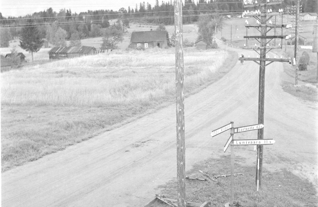 В архиве почему-то этот перекресток подписан - Тиенхаара, Ихала. Какая здесь такая Тиенхаара? Да и не Ихала это уже. Этот перекресток находится в Яккима там, где поворот на Лумиваара (направо). На этом углу стоит похоже старая будка милицейского кпп, приспособленная под какие-то нужды. С балкончика будки и снято