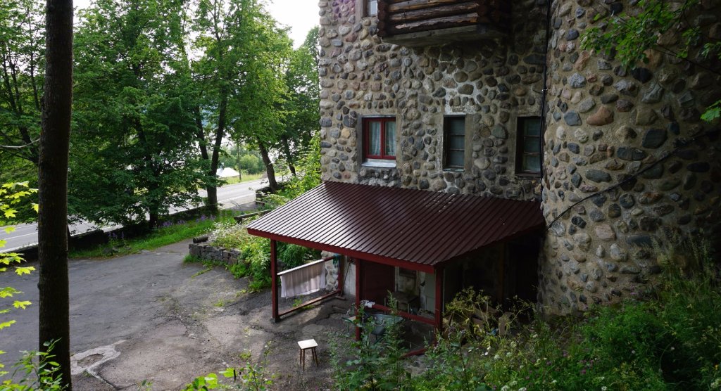 ) Да и в этом при поездке я опять ничего не нашел. Только разбирая фотографии поездки и готовя материал решил перевести подпись к фото. Гугл перевел так - "Народный дом на углу западной железной дороги 13.8.1941". Ага, думаю, - район поисков немного сузился до южной части Сортавала. Там вокзал и т.д. Но опять, проехав по всему Кумюля, не обнаружил тот каменный дом. Основные зацепки видны - два этажа, на втором этаже три окна, под каждым окном кругляшки для красоты, на первом этаже две двери и три витринных стекла. Номер дома при увеличении фото - вроде бы 11.