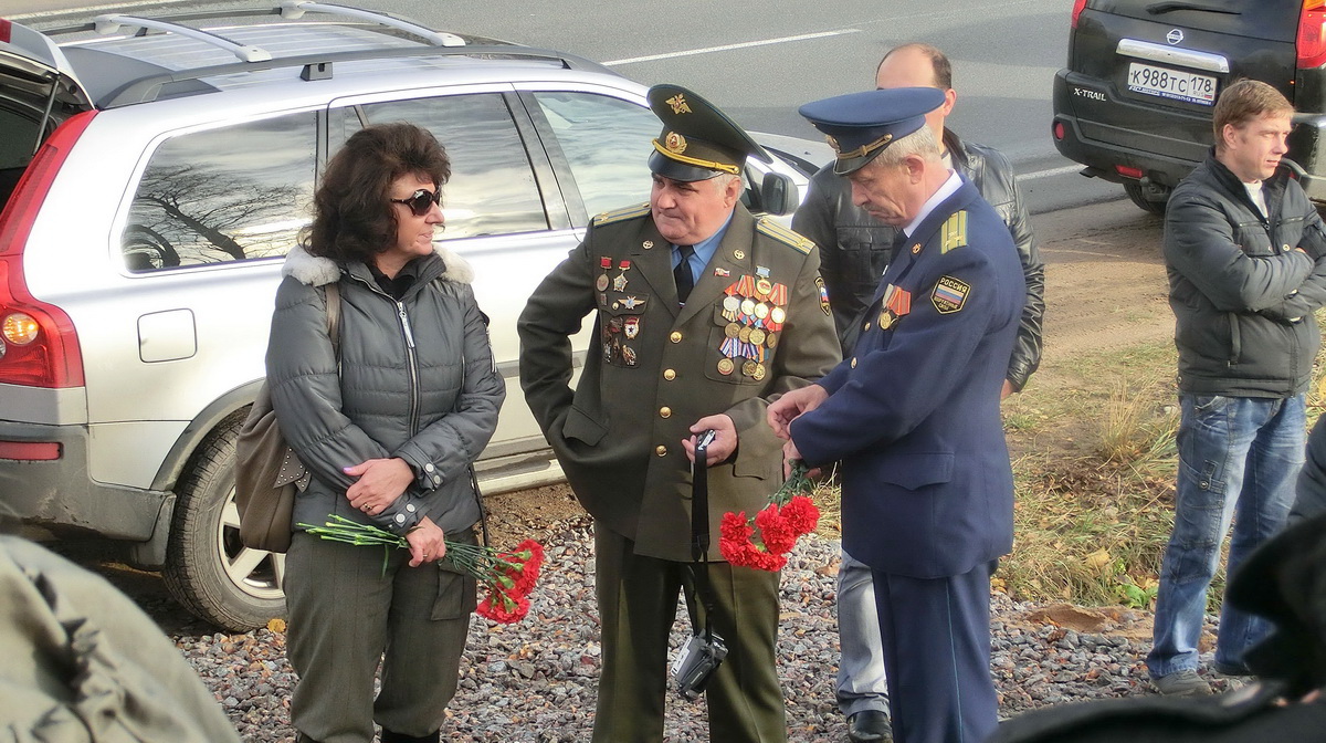 К сожалению, он был болен и не смог присутствовать 20.10.2012 г. на торжественном открытии пямятника- обелиска погибшим летчикам штурмовика ИЛ-2 на 41 км Выб. шоссе.
