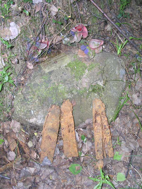 И памятная табличка в окопах за линией фронта (Tähän haatui kapraali Veikko Vilho Halttunen, 10.06.1944)