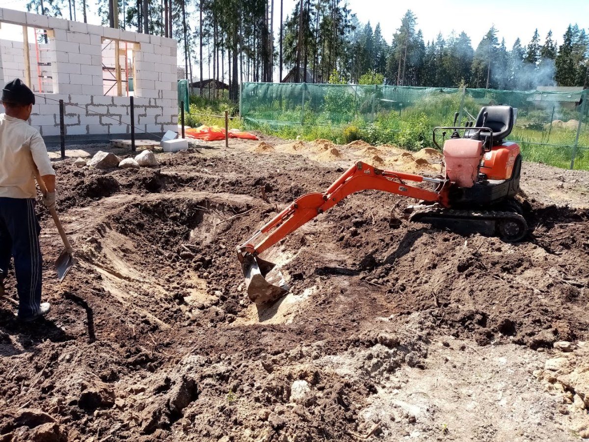 Где совсем нет возможности подъезда большой техники, докапываем до проектной отметки вручную.