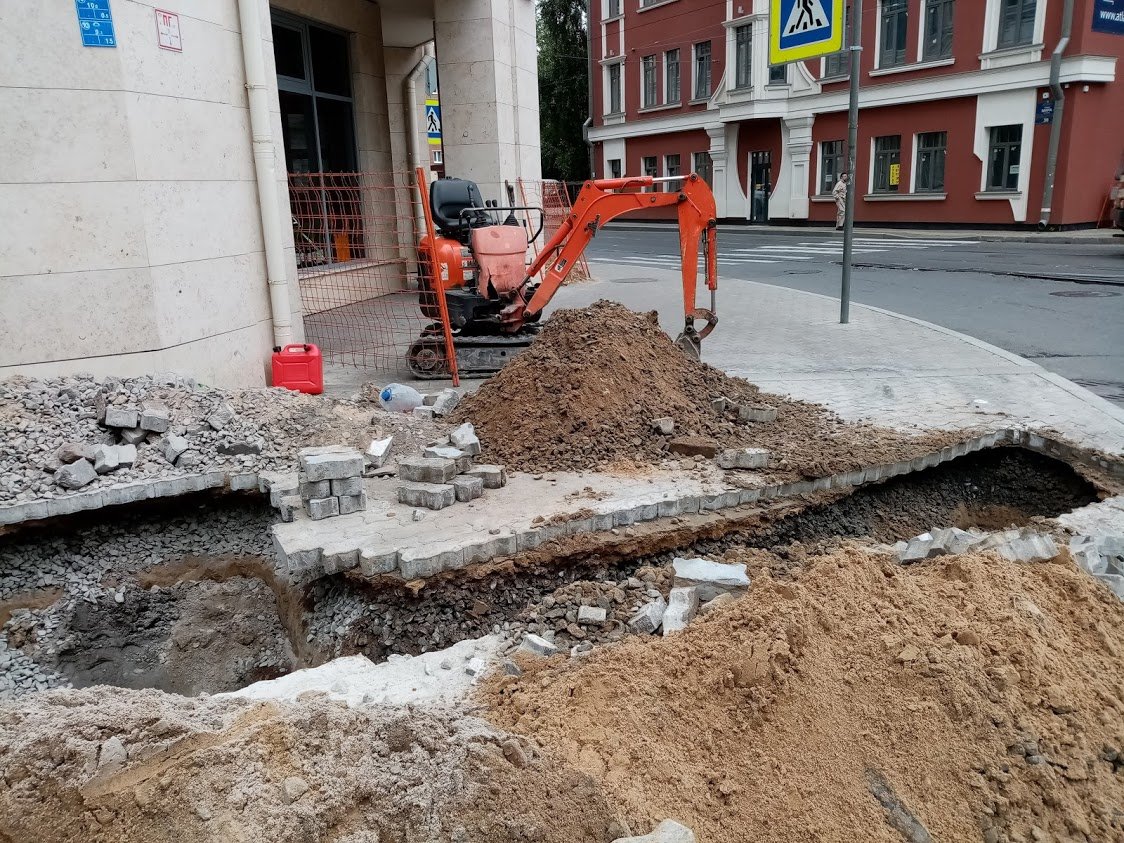 Грунт промерз до 10 см. Местами вскрывали большим перфоратором.