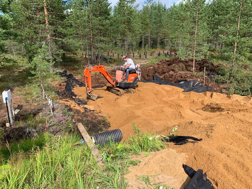 Дренаж участка и приямок для подключения к скважине.