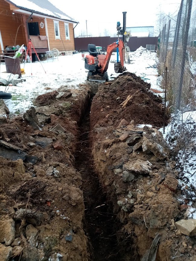 Сегодня работал с газовиками. Ещё в один дом пришло тепло. Копается очень легко. Грунт не промерз. Самое время сделать дренаж или даже ландшафтные работы.